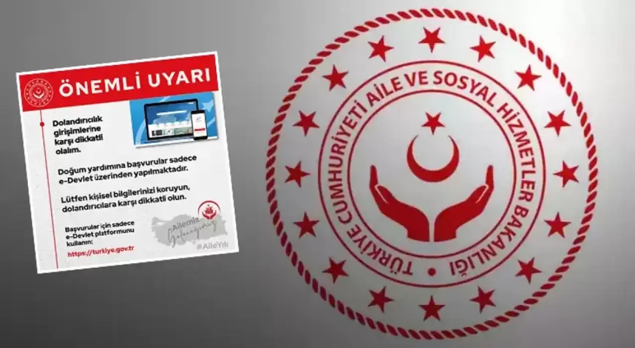 Aile ve Sosyal Hizmetler Bakanlığı, doğum yardımı başvurularının yalnızca e-Devlet üzerinden yapılabileceği konusunda vatandaşları uyardı. Bakanlık, dolandırıcılık girişimlerine karşı dikkatli olunması gerektiğini vurguladı.