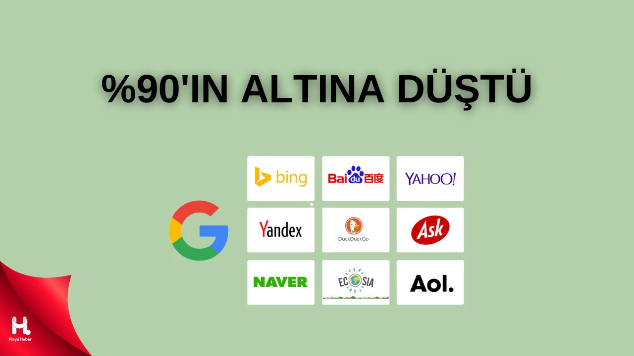 Ekim ayında yüzde 89,34, kasımda yüzde 89,99 ve aralık ayında yüzde 89,73 pazar payına sahip olan Google, bu düşüşle son 10 yılın en düşük seviyesini gördü.