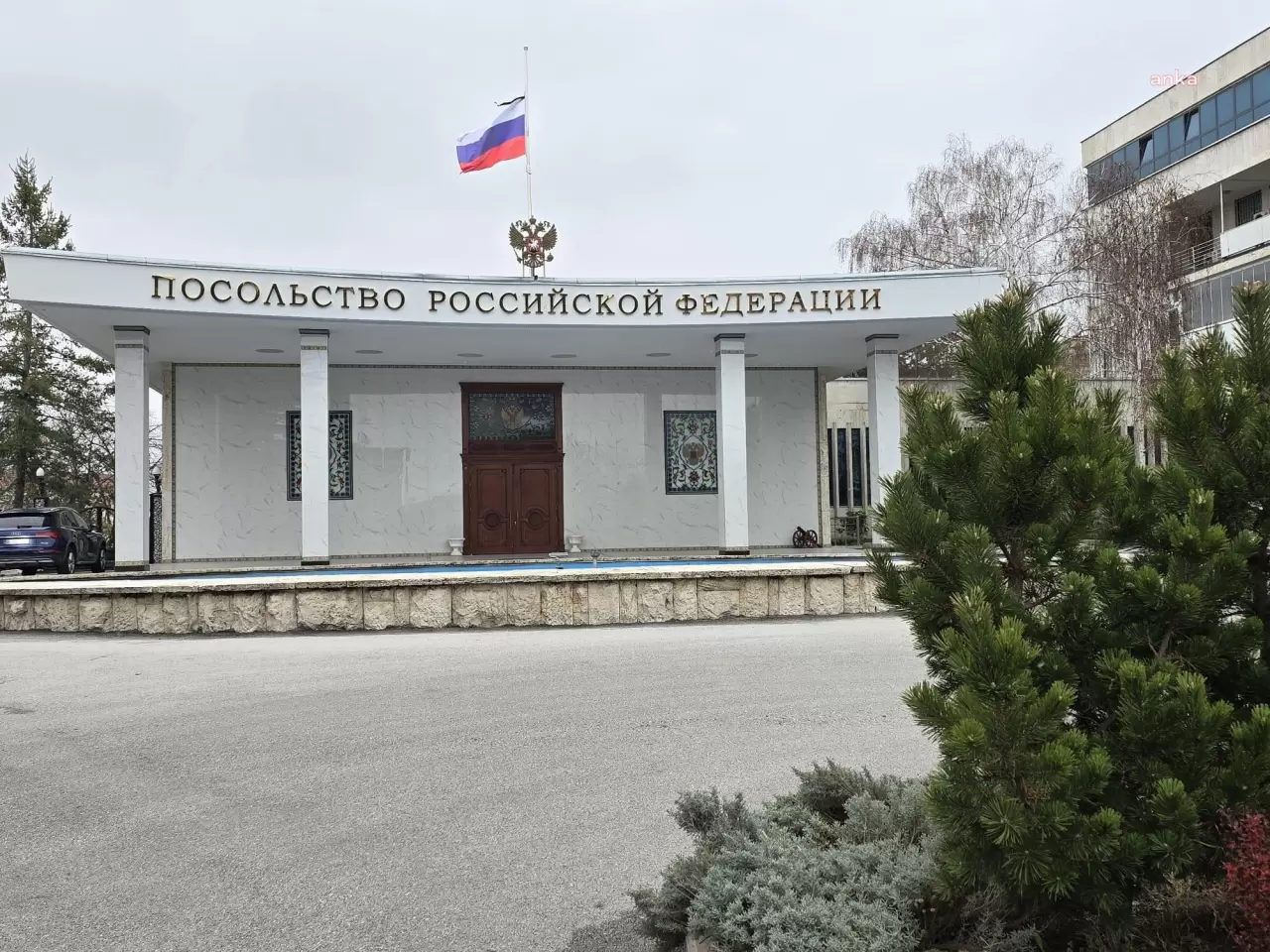 RUSYA'NIN ANKARA BÜYÜKELÇİLİĞİ'NDE MOSKOVA'DAKİ TERÖR SALDIRISI NEDENİYLE  BAYRAK YARIYA İNDİRİLDİ