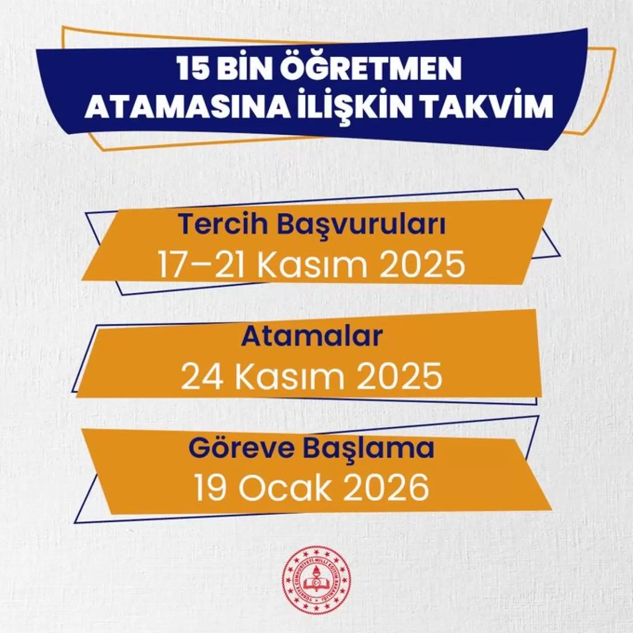 Ataması yapılan öğretmenlerin, bu sürecin tamamlanmasının ardından 19 Ocak 2026 itibarıyla görevlerine başlayacağı açıklandı.
