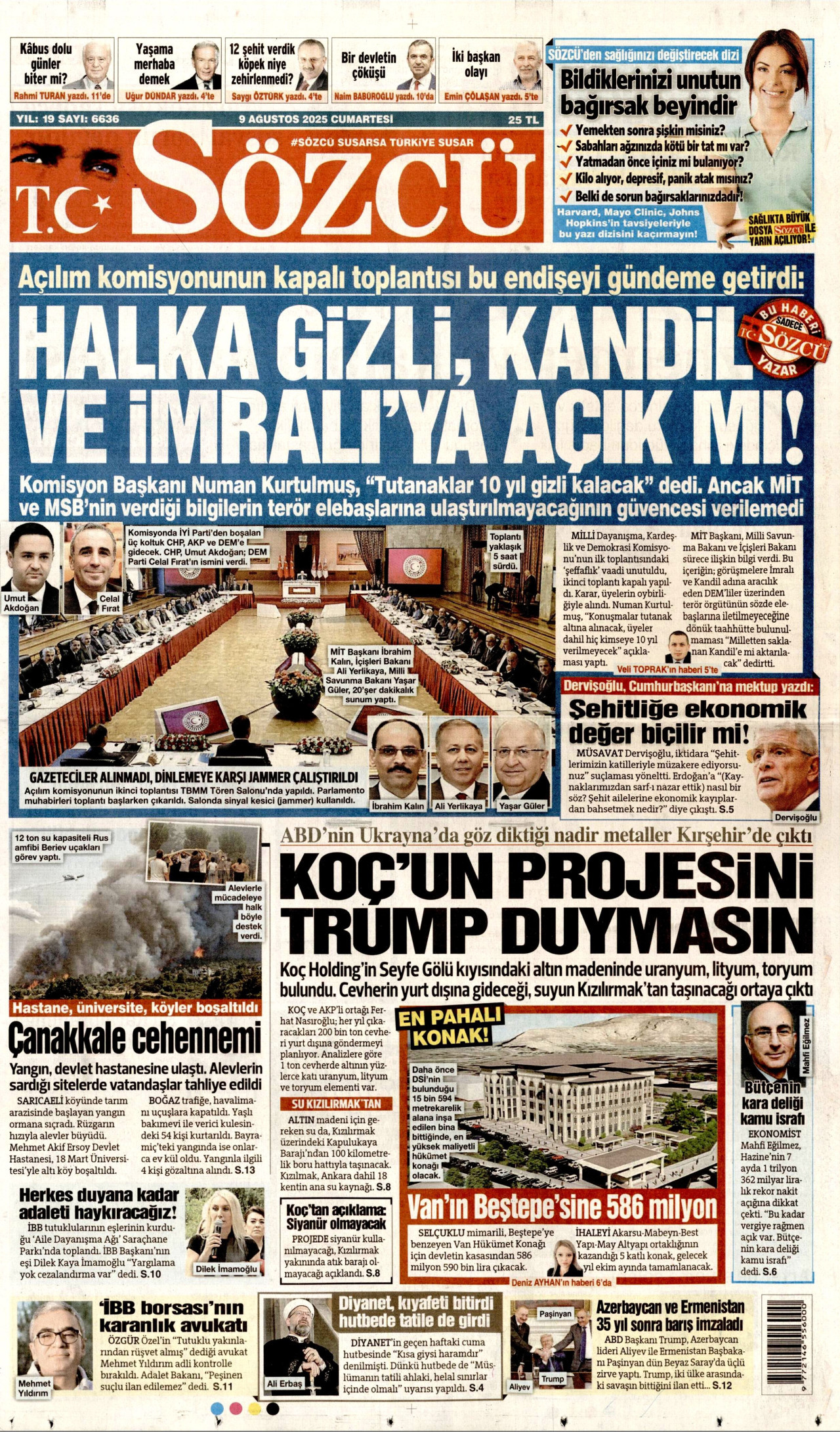 SÖZCÜ - 13 Aralık 2025, Cumartesi Günü Manşeti
