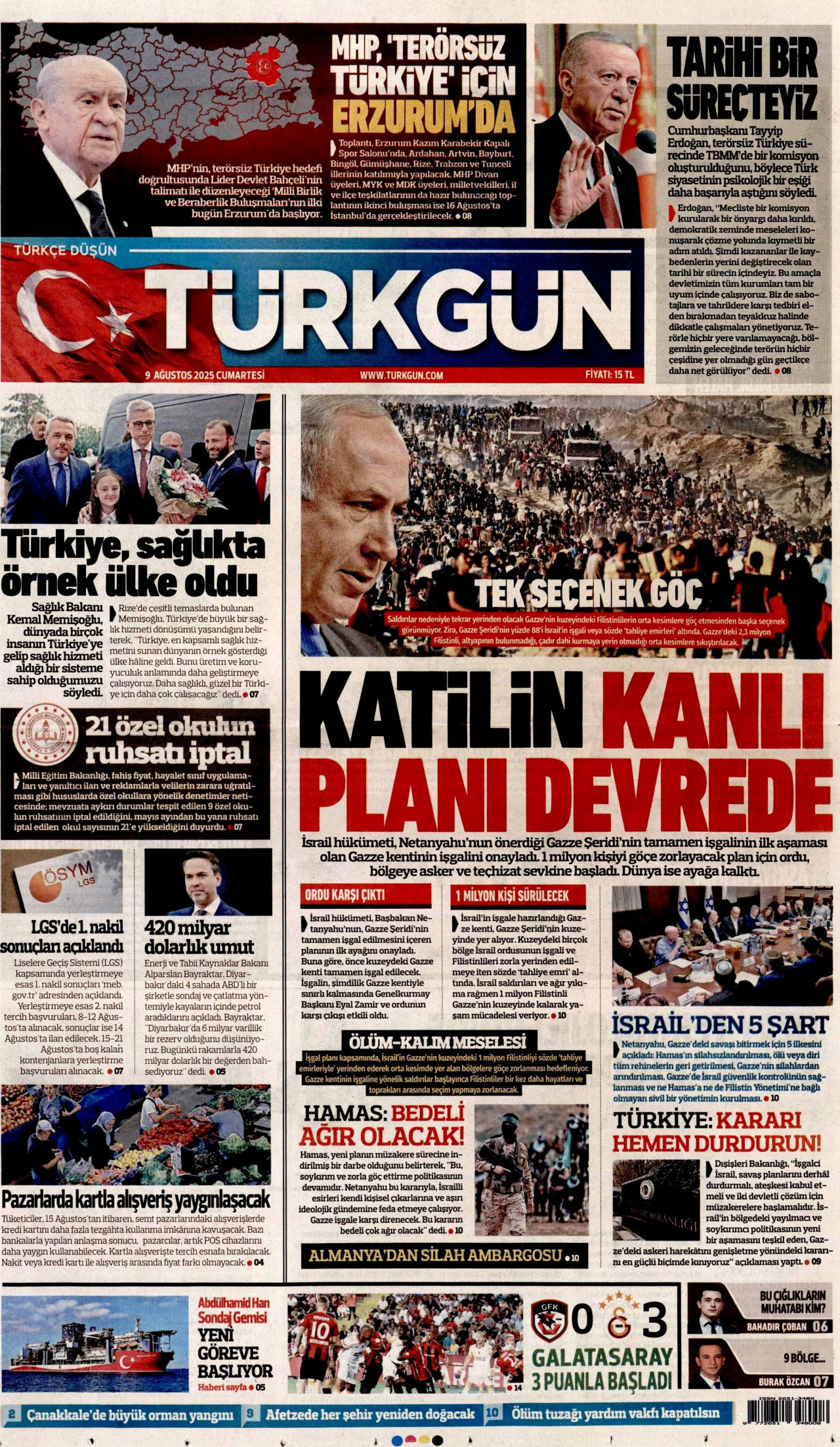 TÜRKGÜN - 13 Aralık 2025, Cumartesi Günü Manşeti