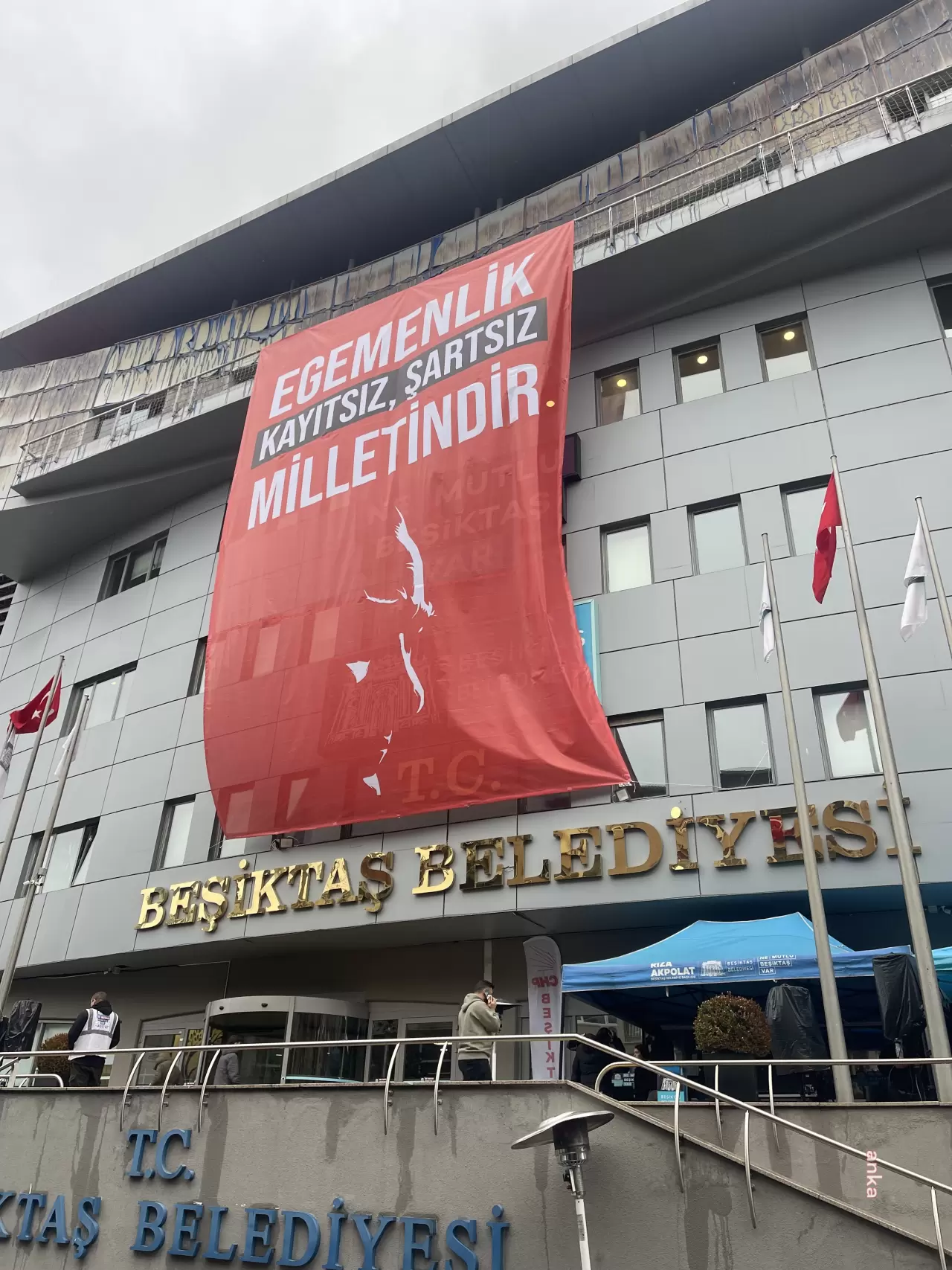 Beşiktaş Belediyesi binasına "Egemenlik kayıtsız, şartsız milletindir"  yazılı dev poster asıldı