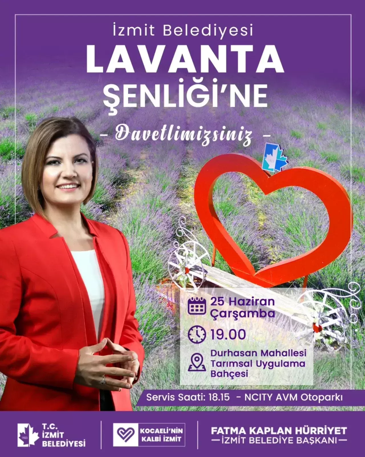İzmit Belediyesi, 25 Haziran'da geleneksel Lavanta Şenliği'ne davet ediyor. Mor lavantaların büyüleyici kokusuyla doğaseverleri buluşturacak.