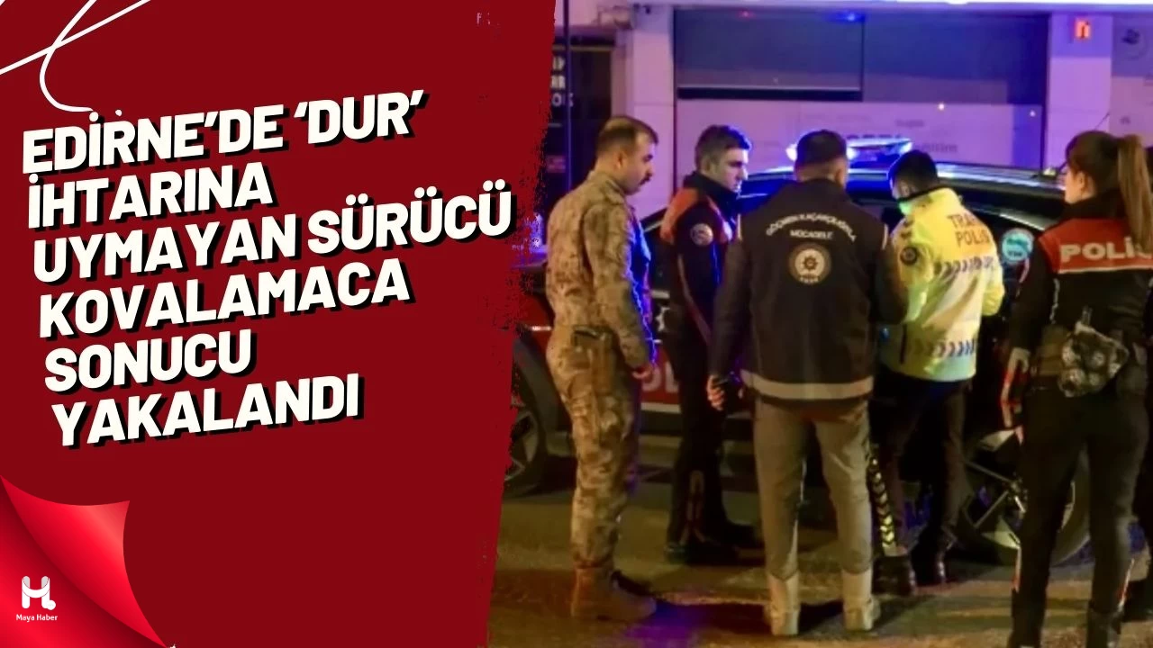 Edirne'de polis ekipleri, dur ihtarına uymayan bir sürücüyle kovalamaca yaşadı. Kovalamaca sonucunda sürücü yakalanarak gözaltına alındı.