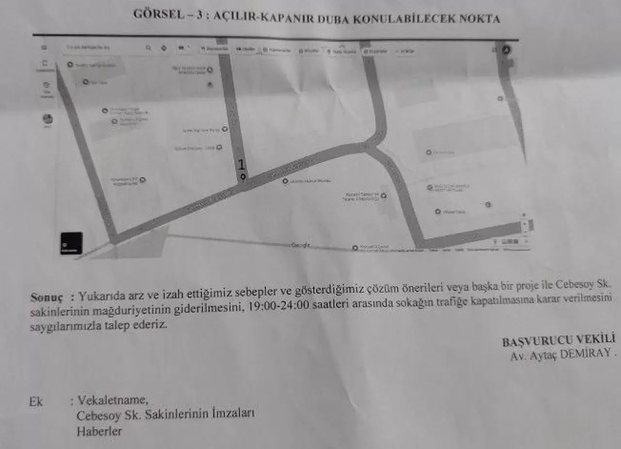 Esnaflar, Cebesoy Sokak'ın 19:00-24:00 saatleri arasında trafiğe kapatılmasını talep ediyorlar. Ayrıca, bu uygulamanın yapılabilmesi için doğabilecek masrafların karşılanmaya gönüllü olduklarını belirtiyorlar. Sokağın trafiğe kapanması için çeşitli öneriler de sunulmuş. Bu öneriler arasında, sokağın belirli noktalarına açılır kapanır dubaların yerleştirilmesi ve otopark kullanımı için gerekli düzenlemelerin yapılması yer alıyor.