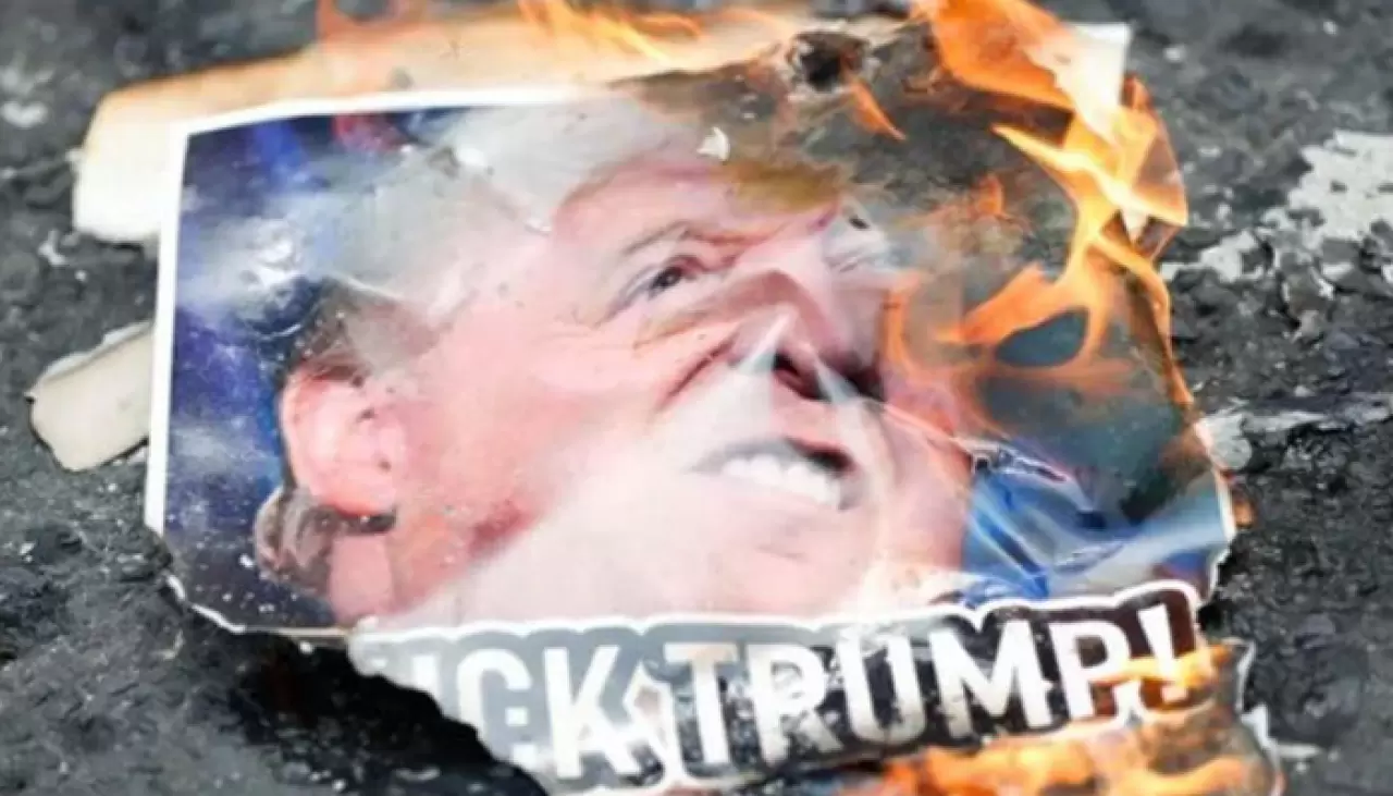 Göstericiler Trump'ın Posterlerini Yakarak Tepkilerini Dile Getirdi