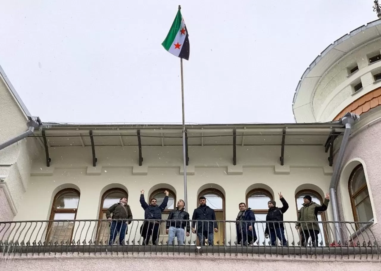 Dün indirilen Baas rejimine ait bayrağın yerine Suriye devrimi bayrağı göndere çekildi. Suriye'nin Moskova Büyükelçiliği'nde yeni çekilen bayrak, Anadolu Ajansı (AA) muhabirleri tarafından görüntülendi. Şişli'deki Suriye'nin Başkonsolosluğu binasına 61 yıllık Baas rejiminin devrilmesinin ardından Suriyeli muhaliflerin devrim bayrağı asıldı.