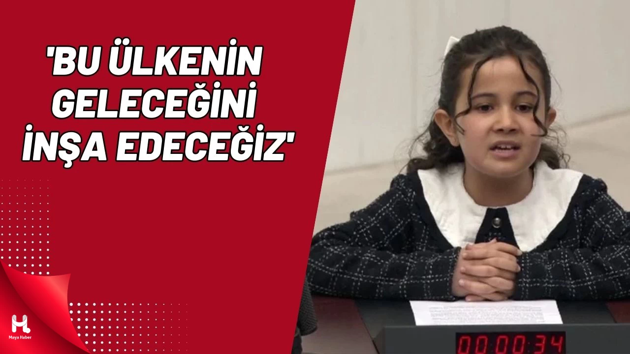 Konuşmasına coşkuyla başlayan 11 yaşındaki Melike Sena Demirhan, "Bilimle, sanatla, sporla yetişen çocuklar, bu ülkenin aydınlık geleceğini inşa edecek" diyerek, daha fazla bilim atölyesi, sanat alanı ve spor imkânı sağlanması gerektiğine vurgu yaptı. Konuşmasının sonlarına doğru ise arkasını dönerek, Meclis'teki "Egemenlik kayıtsız, şartsız milletindir" yazısını okudu ve salondan büyük alkış aldı.