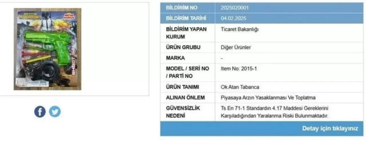 Ticaret Bakanlığı, ebeveynleri çocuk ürünleri satın alırken güvenlik standartlarına dikkat etmeleri konusunda uyardı. Güvensiz ürünlerin tespiti için Güvensiz Ürün Bilgi Sistemi (GÜBİS) üzerinden yapılan duyuruların takip edilmesi gerektiği vurgulandı.