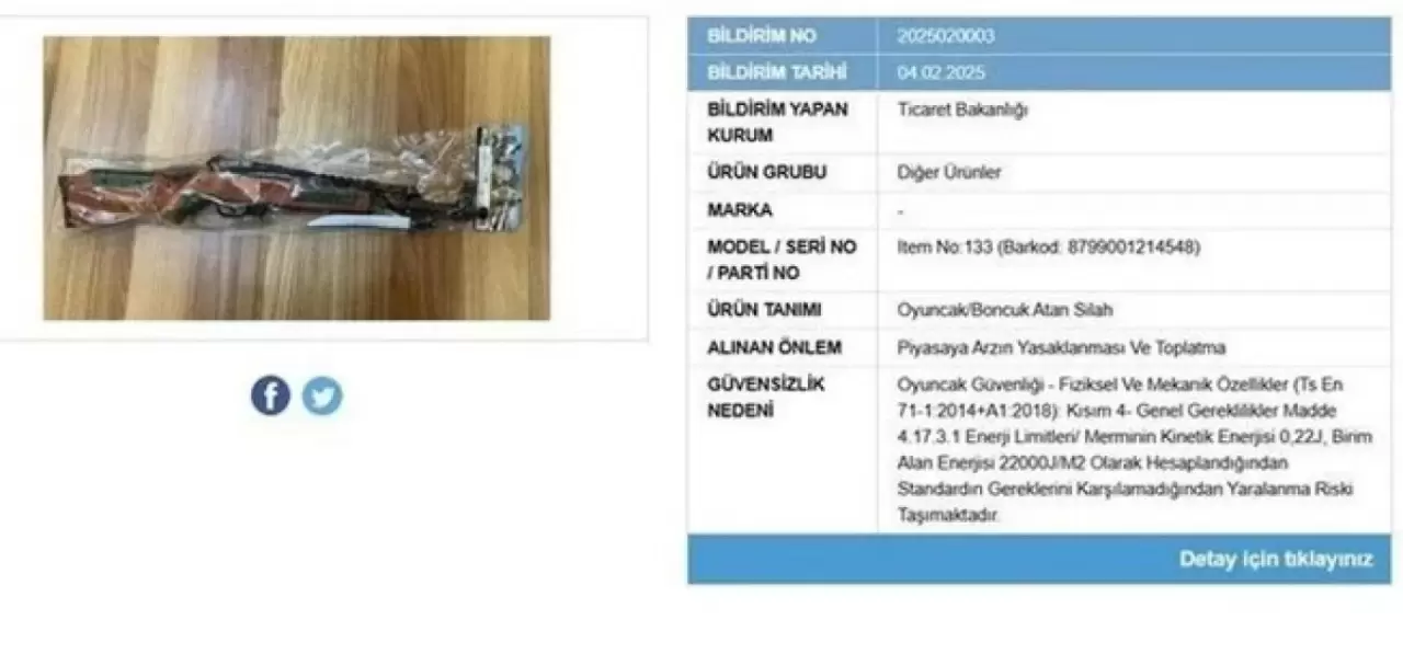 04.02.2025 tarihli bildirime göre, piyasadan çekilen ürünler arasında sadece bebek kıyafetleri değil, çeşitli oyuncaklar da bulunuyor. Daha önce güvensiz olduğu tespit edilerek toplatılan ürünler şunlar: