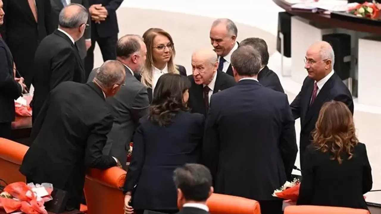 DEM Parti heyeti, Meclis ziyaretleri kapsamında MHP Genel Başkanı Devlet Bahçeli ile bir görüşme gerçekleştirdi. Görüşmenin ardından açıklama yapılması bekleniyor.