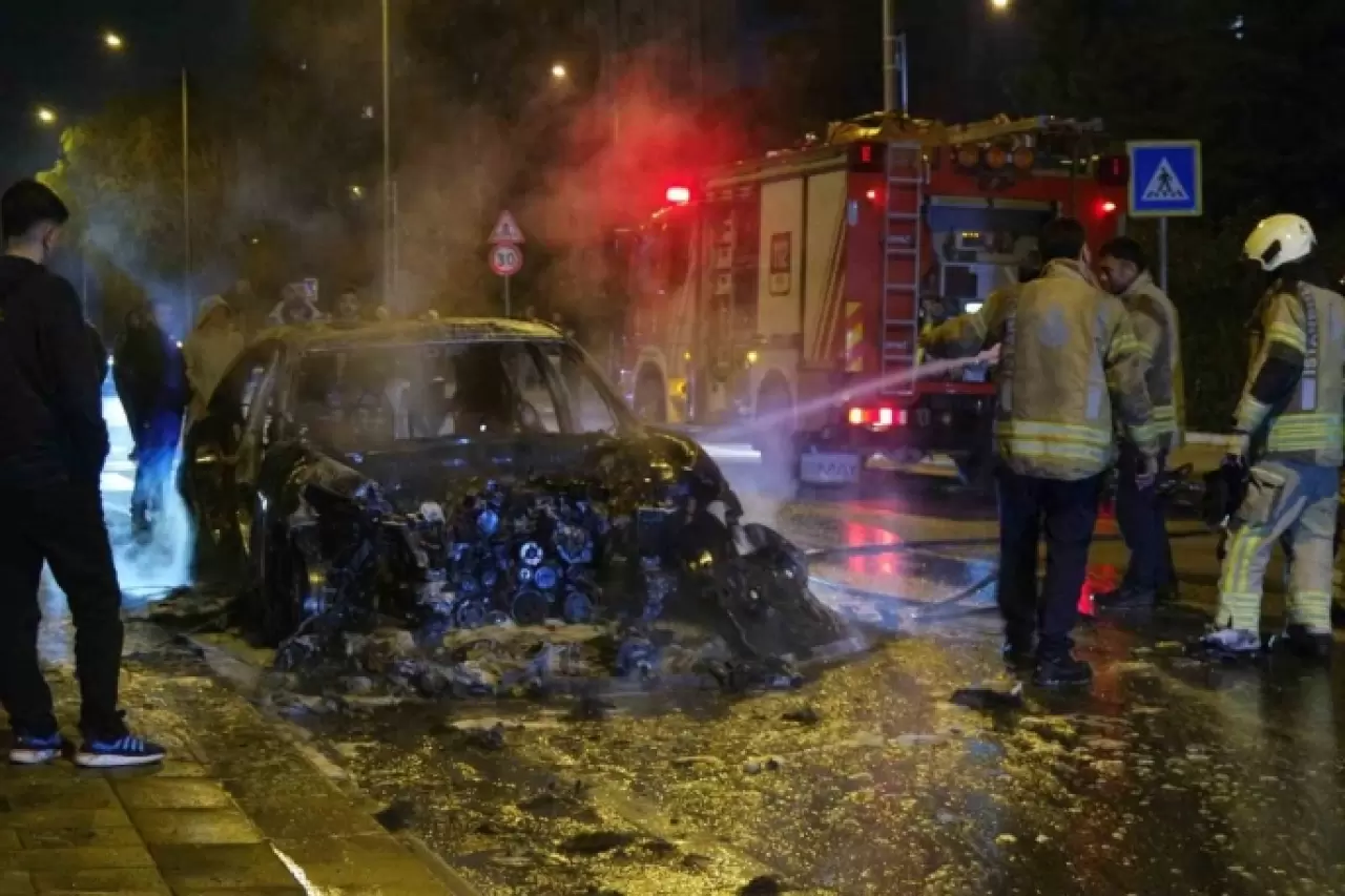 İhbar üzerine olay yerine itfaiye ve polis ekipleri sevk edildi. Ekipler yangını kontrol altına alarak söndürdü. Araç ise kullanılamaz hale geldi.