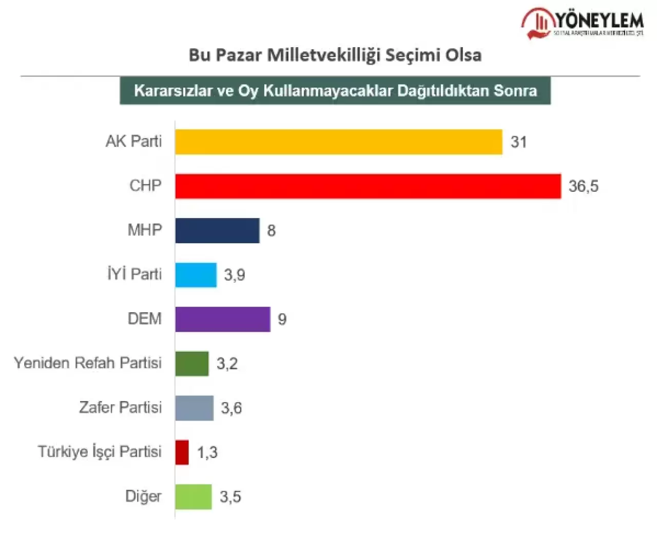 CHP, Kararsızlar Dağıtıldığında Yüzde 36,5 ile Birinci Parti Oldu