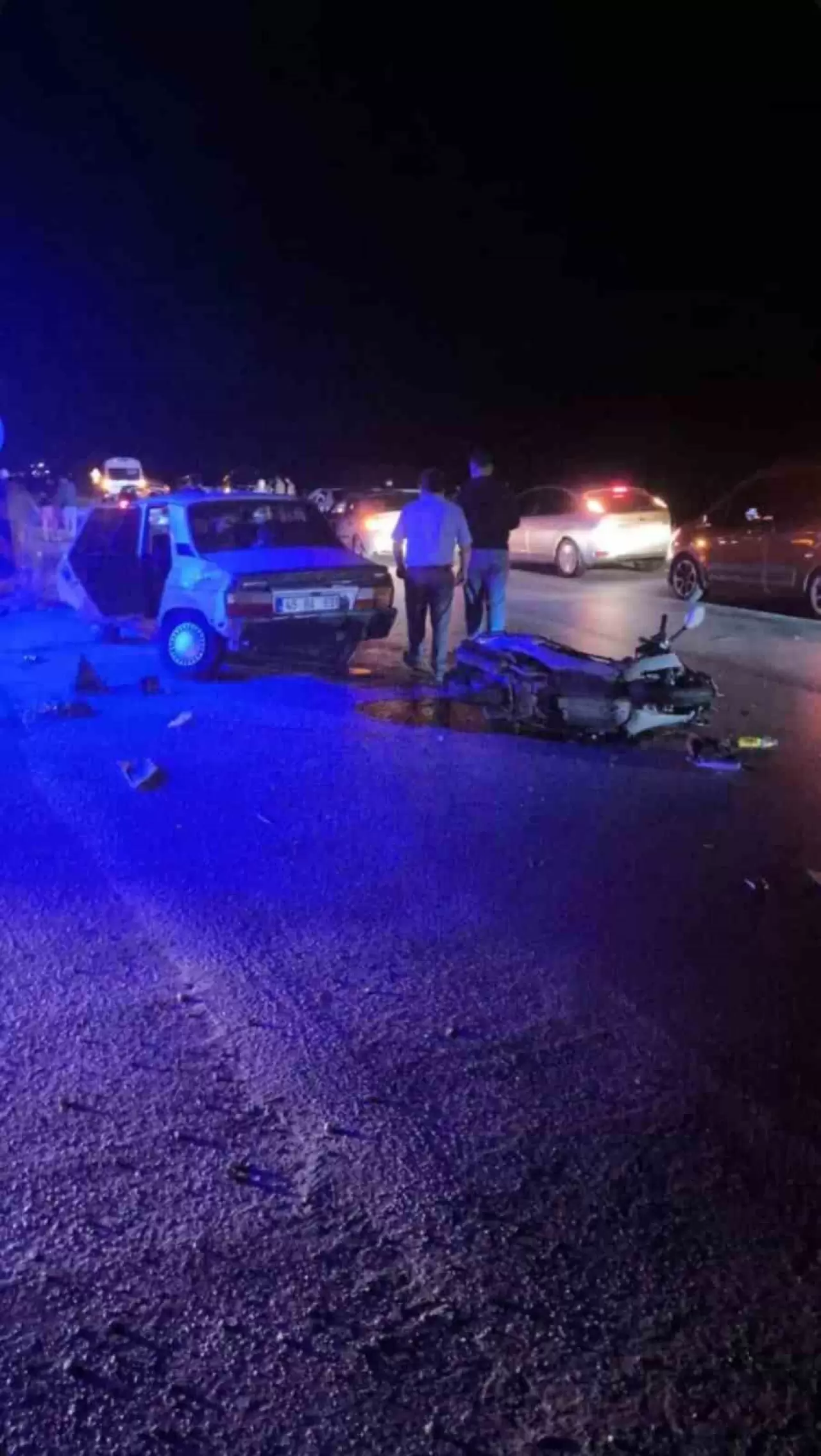 Edinilen bilgiye göre, A.Ç. idaresindeki 45 BA 691 plakalı otomobil, U dönüşü yapmak istediği sırada karşı yönden gelen motosikletle çarpıştı. Çarpışmanın şiddetiyle motosikletteki iki kişi yola savruldu.