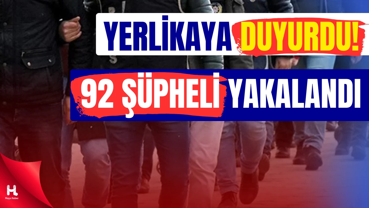 İçişleri Bakanı Ali Yerlikaya, Jandarma ekiplerinin 22 ilde düzenlediği operasyonlarda DEAŞ terör örgütüne finans sağlayan ve sosyal medya hesapları üzerinden propaganda yapan 92 şüphelinin yakalandığını açıkladı.