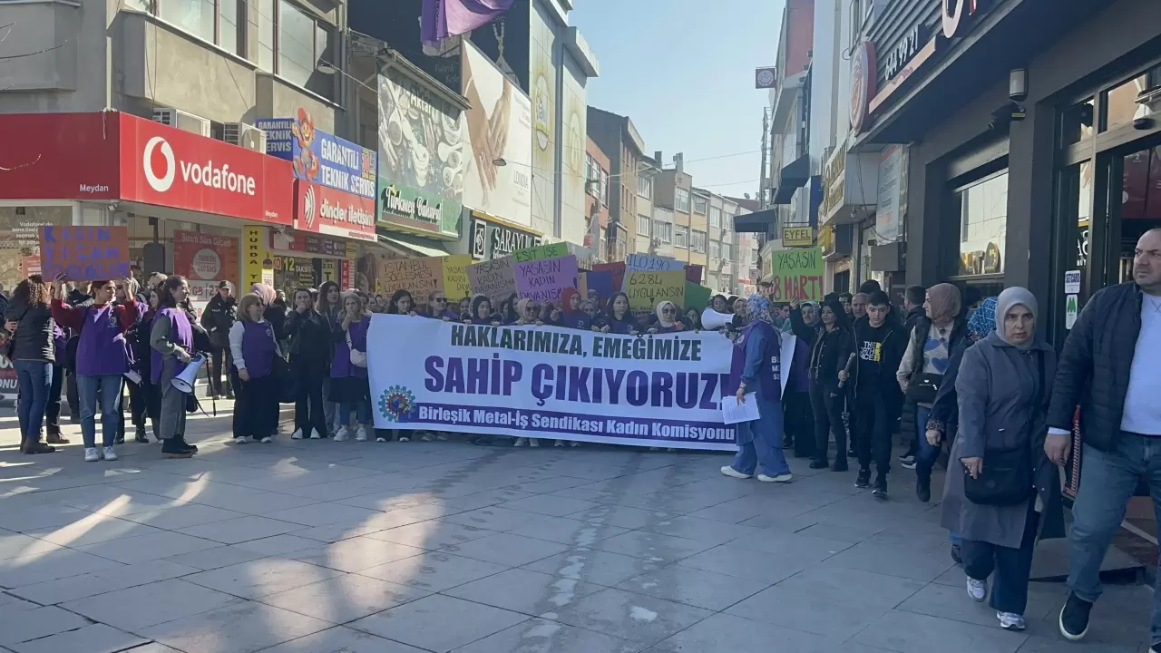 Gebze’de Birleşik Metal İş Sendikası Kadın Komisyonu, haklarını ve emeklerini savunmak için grev düzenledi. Kadın işçilerin seslerini duyurduğu eylemde, “Yaşasın Kadın Dayanışması” ve “Dünya Yerinden Oynar, Kadınlar Özgür Olsa” sloganları yükseldi.