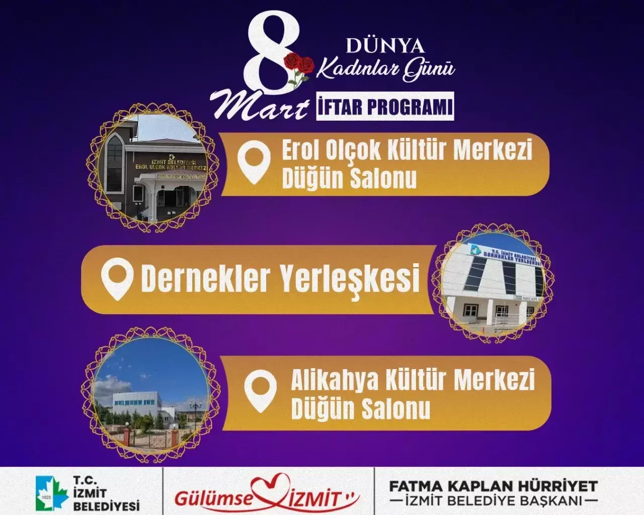İzmit Belediyesi, 8 Mart Dünya Kadınlar Günü’nde kadınları iftar sofrasında buluşturacak, dayanışma ve birlik mesajı verecek.