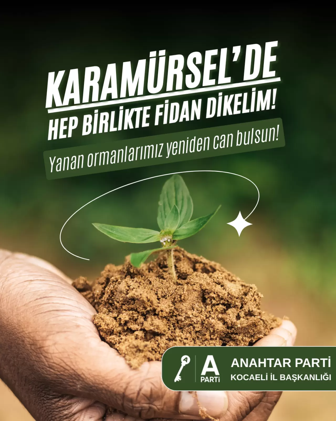 Anahtar Parti, Karamürsel’deki yangından etkilenen bölgelere yönelik ağaçlandırma çalışmalarına başlama kararı aldığını duyurdu. Fidan dikmenin yalnızca bir doğa eylemi değil, aynı zamanda umudu yeniden yeşertmek olduğuna vurgu yapılan açıklamada, bu adımın geleceğe bırakılacak yeşil bir iz bırakacağı ifade edildi.