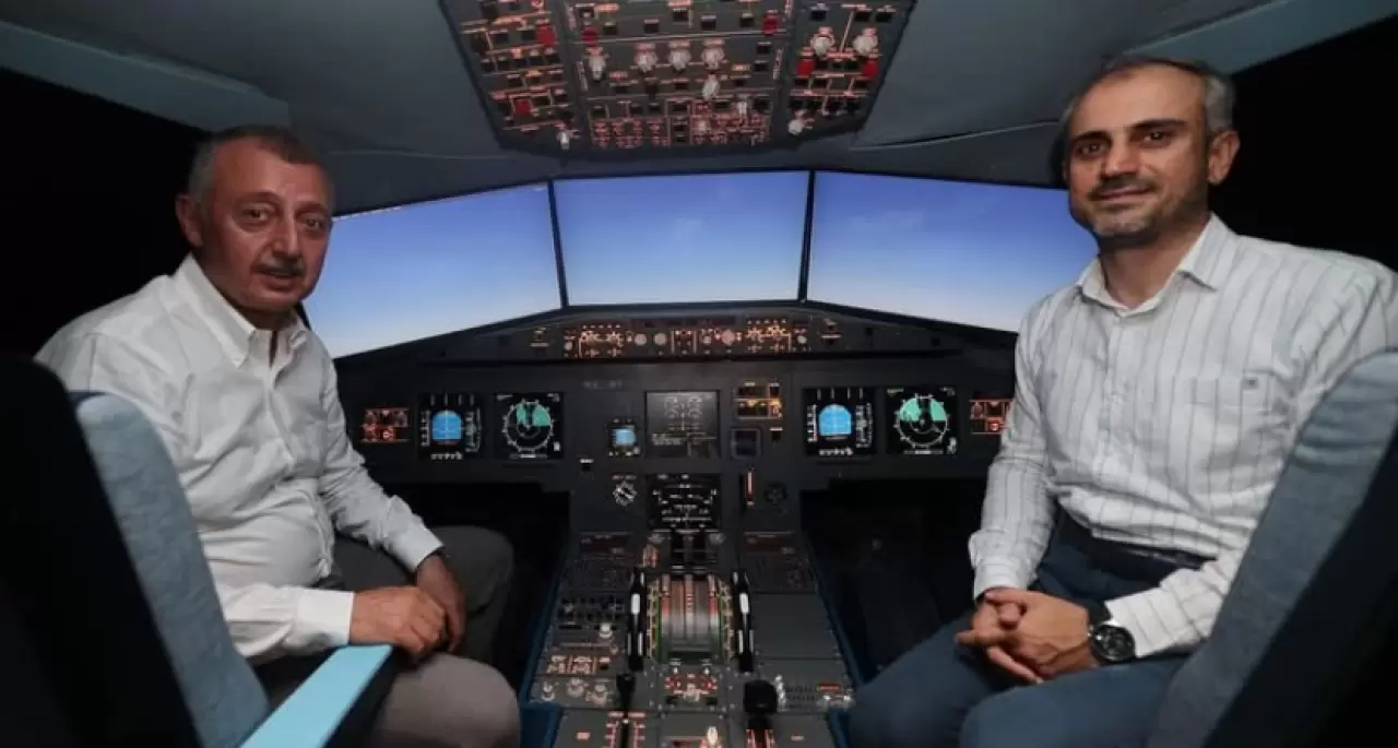 Kocaeli Büyükşehir Belediye Başkanı Tahir Büyükakın, Çayırova'daki Uçak Park Bilim Merkezi'nde simülasyonla uçuş yaptı.