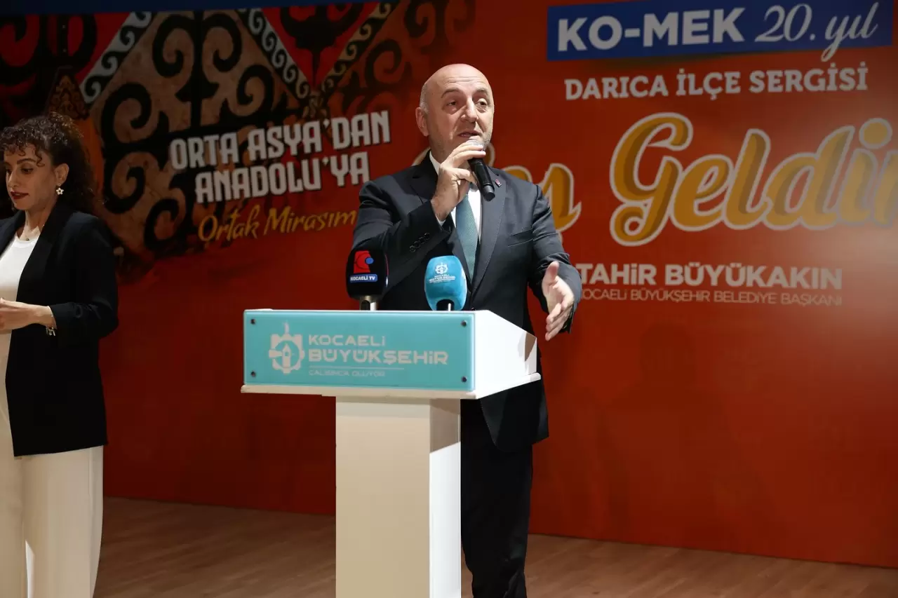 Kocaeli Büyükşehir Belediye Başkanı Doç. Dr. Tahir Büyükakın, KO-MEK’in “Orta Asya’dan Anadolu’ya Ortak Mirasımız” temalı Darıca İlçe Sergisine katıldı. El emeği göz nuru ürünlerin yer aldığı sergiyi tek tek gezerek kursiyerlerden bilgi alan Büyükakın, vatandaşlardan gelen “Allah razı olsun” duasının kendileri için en büyük ödül olduğunu söyledi.