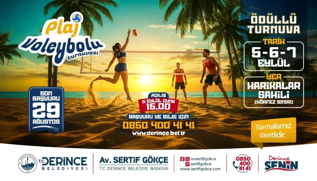 Derince Belediyesi’nin 5-6-7 Eylül’de düzenleyeceği ödüllü Plaj Voleybolu Turnuvası için kayıtlar başladı. Son başvuru 29 Ağustos Cuma.