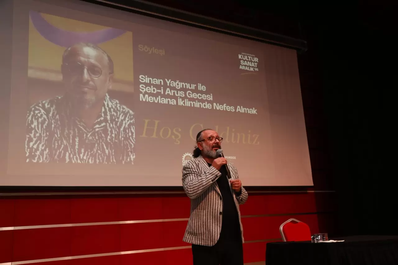 Sinan Yağmur ile “Şeb-i Arus” Söyleşisi Hafta sonu programları, yazar ve düşünür Sinan Yağmur’un gerçekleştirdiği “Şeb-i Arus Gecesi: Mevlana İkliminde Nefes Almak” konulu söyleşiyle sona erdi. Mevlana’nın düşünce dünyasını, sevgi ve hoşgörü anlayışını anlatan Yağmur, katılımcılar tarafından ilgiyle dinlendi.