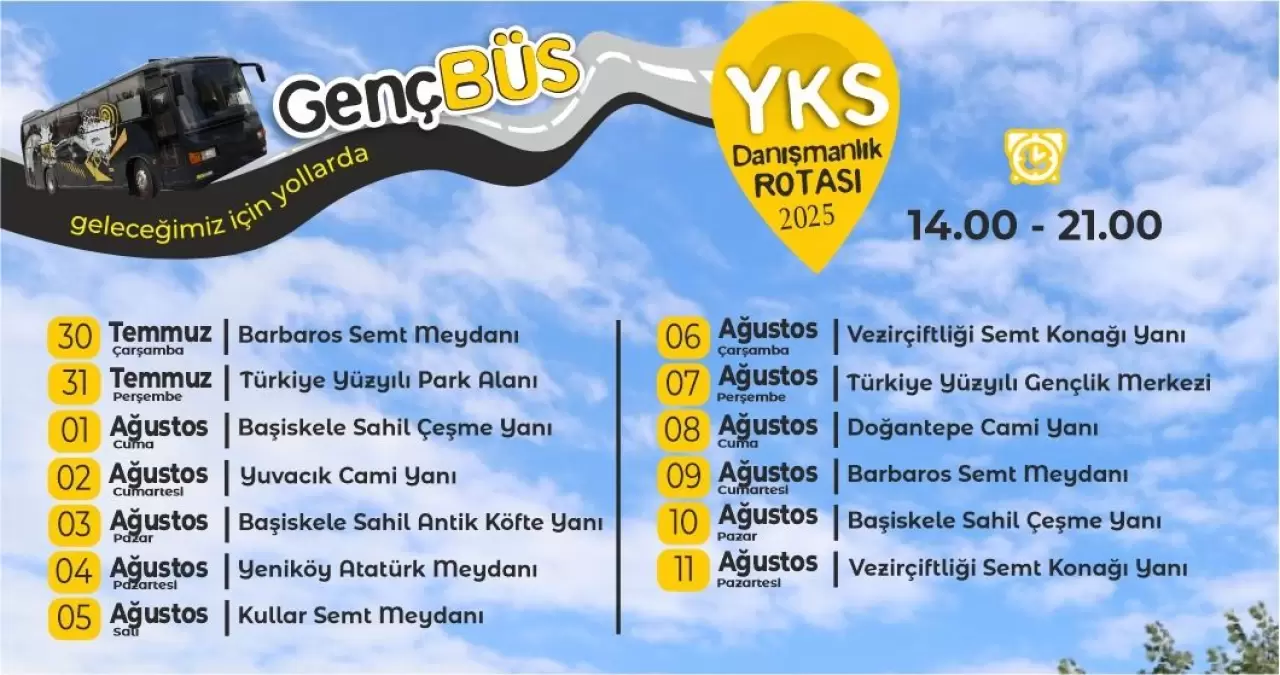 GençBüs Mobil Gençlik Merkezi YKS-2025 Tercih Durağı Takvimi:
