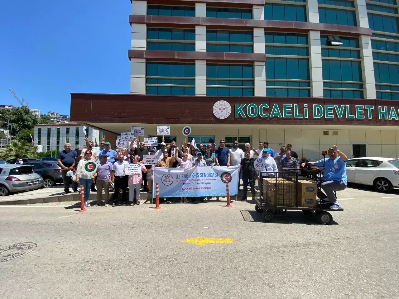 Öz Sağlık İş Sendikası Kocaeli Şubesi, HAK-İŞ Konfederasyonu’na bağlı olarak, kamu çerçeve protokolü kapsamında yapılan yüzde 16 zam teklifine karşı tepkisini ortaya koydu. Bugün Kocaeli Devlet Hastanesi otoparkında yapılan basın açıklamasına, Öz Sağlık İş Sendikası Kocaeli Şube Başkanı Sedat Balkan, sendika yönetimi ve üyeler katıldı.