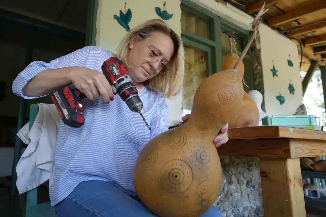 Kartepe'nin Uzuntarla Mahallesi’nde yaşayan 48 yaşındaki Asuman Aldemir, kurumsal iş hayatındaki yoğun stresi atmak amacıyla başladığı hobiye zamanla tutku haline dönüştü. 4 yıl önce tatil için gittiği Bodrum’un Gümüşlük beldesinde gördüğü ışıklı su kabağı süslemelerinden ilham alan Aldemir, bu hobisini Kocaeli’deki evinin yanındaki eski bir ahırı atölyeye dönüştürerek sürdürüyor.