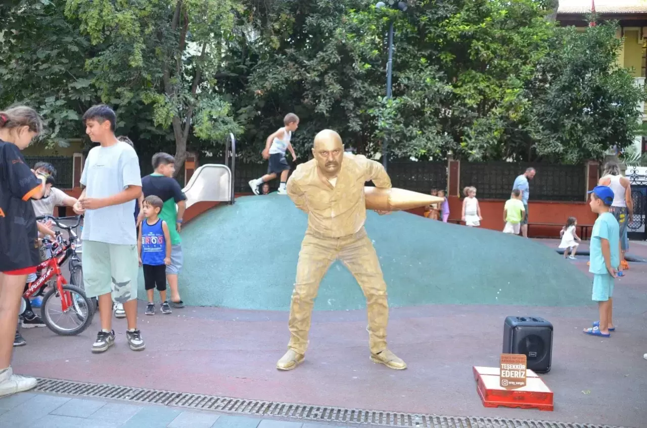 İzmit Yürüyüş Yolu’nda, Ulugazi İlkokulu önünde Eray Sargın tarafından gerçekleştirilen ‘Sessizliğin Ağırlığı Seyit Onbaşı Canlı Heykel Performansı’, vatandaşlar tarafından büyük ilgiyle karşılandı. Etkinlik, 30 Ağustos Zafer Bayramı öncesi tarihî bir anı yaşatırken, Seyit Onbaşı’nın kahramanlığını ve ruhunu günümüze taşıdı.