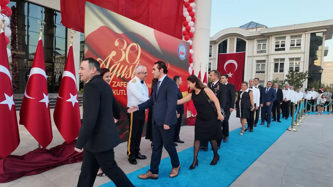 Misafirlerini tören alanının girişinde karşılayan ve Zafer Bayramlarını kutlayan Vali İlhami Aktaş ve eşi Songül Aktaş daha sonra davete katılan misafirlerle tek tek görüşüp, hal ve hatırlarını sordu.