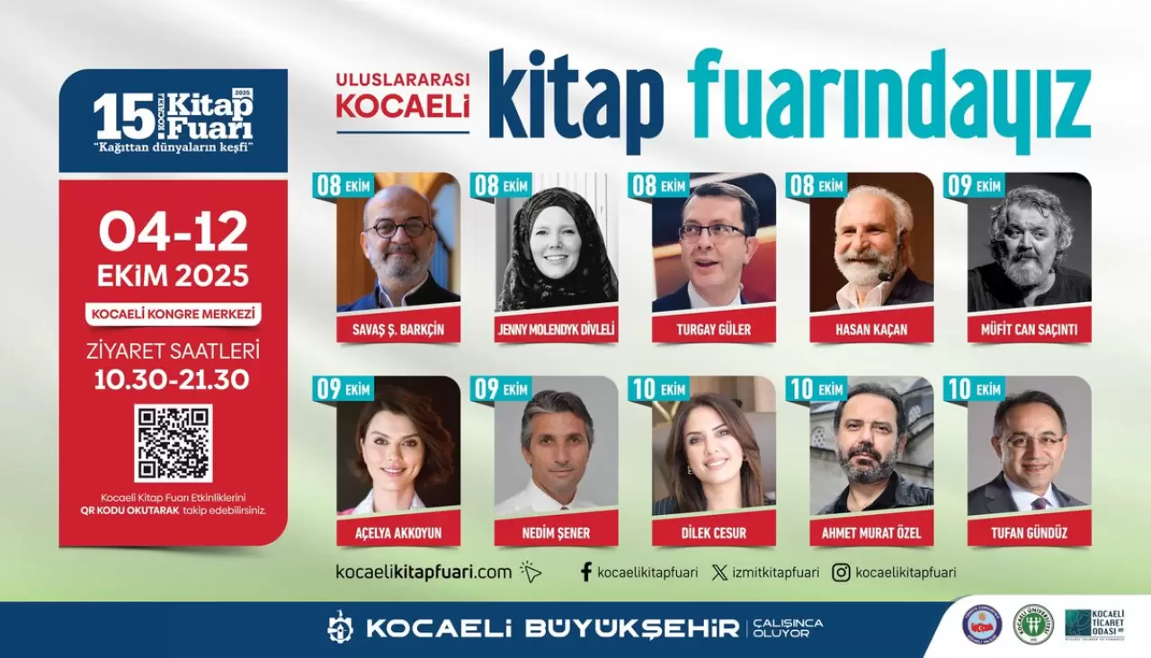 Kocaeli Büyükşehir Belediyesi tarafından bu yıl “Anadolu Mayası” temasıyla düzenlenecek olan 15. Kocaeli Kitap Fuarı, 4-12 Ekim tarihleri arasında Kocaeli Kongre Merkezi’nde gerçekleştirilecek. Fuarda 515 yayınevi, sahaf ve sivil toplum kuruluşu yer alacak; 1050 panel, söyleşi ve imza etkinliği düzenlenecek.