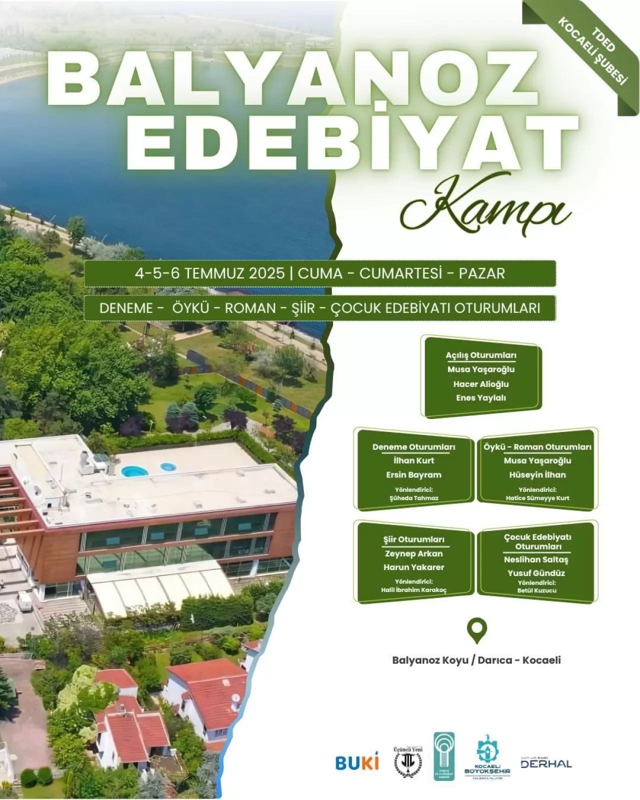 Türkiye Dil ve Edebiyat Derneği (TDED) Kocaeli Şubesi, Kocaeli Büyükşehir Belediyesi’nin desteğiyle 4–5–6 Temmuz 2025 tarihlerinde Darıca Balyanoz Sosyal Tesisleri ev sahipliğinde kapsamlı bir Edebiyat Kampı düzenliyor. Üç gün sürecek kampta şiirden denemeye, çocuk edebiyatından romana kadar geniş bir çerçevede edebi oturumlar yapılacak.