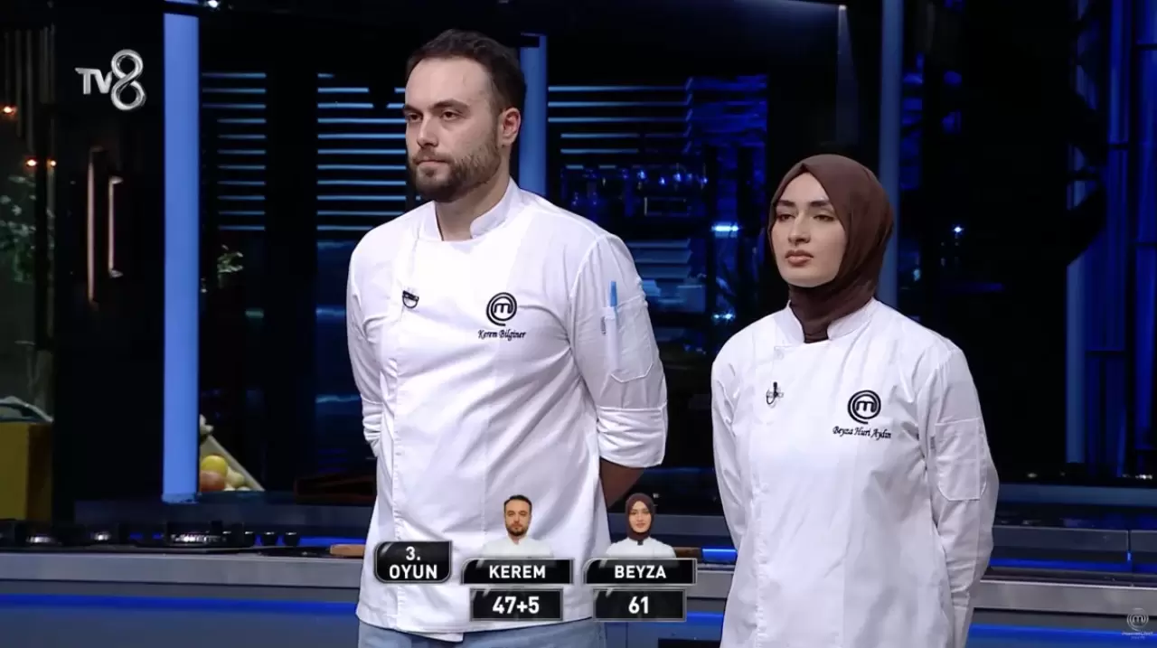 TV8 ekranlarında yayınlanan ve büyük bir ilgiyle takip edilen MasterChef Türkiye’de heyecan dolu anlar yaşandı. Yarışmanın büyük finaline adım adım yaklaşılırken, son yarı finalist olmak için Kerem ve Beyza kıyasıya mücadele etti. Gecenin sonunda Kerem, 62 puanla MasterChef’te ilk 4’e kalan son isim oldu. Beyza ise yarışmaya veda etti.