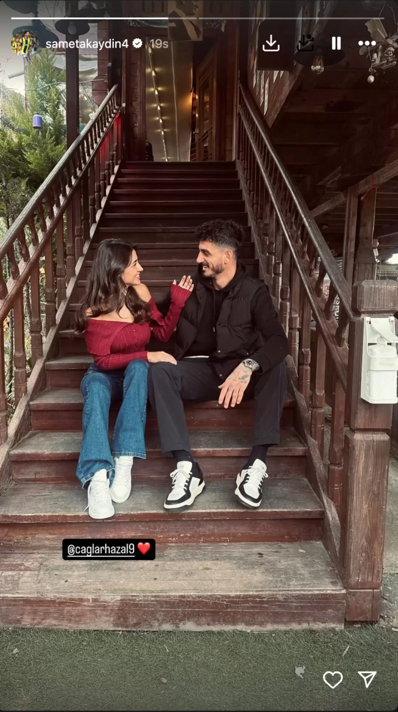 İlişkileri hakkında bugüne kadar sessiz kalan çift, sosyal medyada ilk aşk pozunu paylaşarak hayranlarını sevindirdi. Samet Akaydin, Instagram hesabında Hazal Çağlar’la birlikte çekildiği bir fotoğrafı yayınladı. Hazal Çağlar da aynı fotoğrafı paylaşarak milli futbolcunun adını ve bir kırmızı kalp emojisi ekledi.