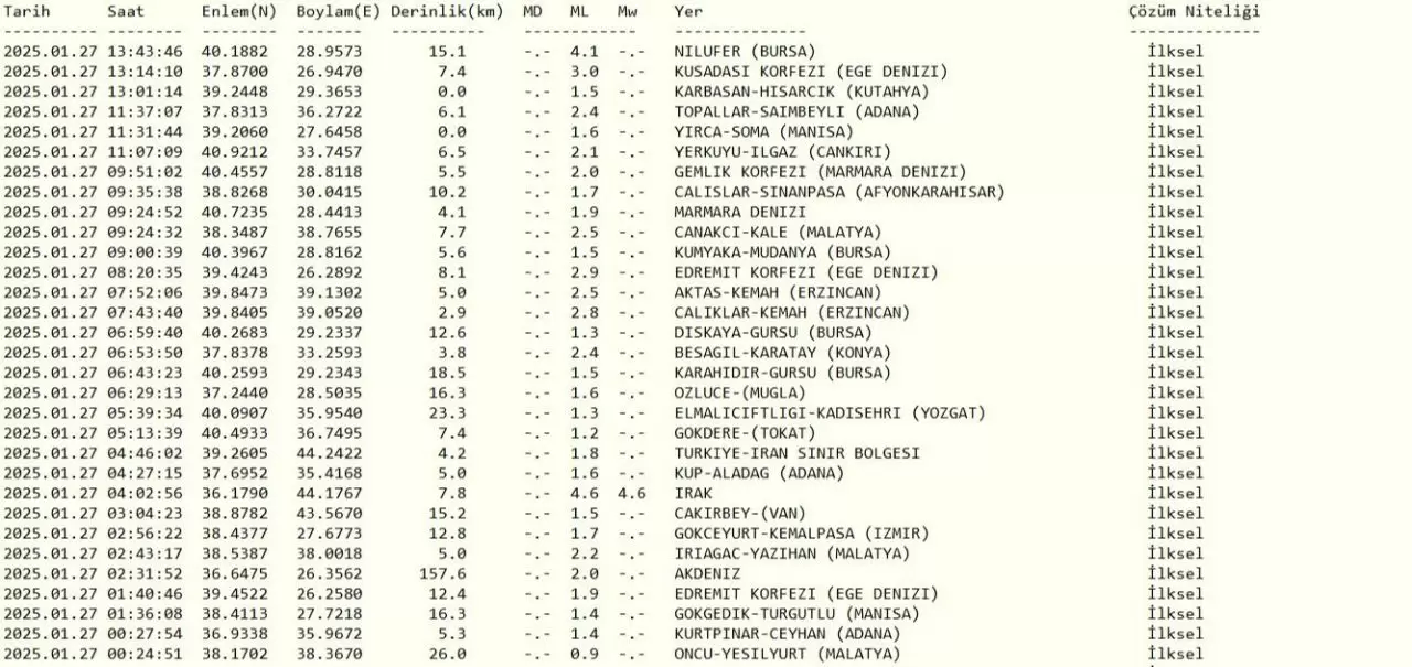 27 Ocak günü, Bursa ve çevre illerde hissedilen bir deprem, vatandaşlara endişeli anlar yaşattı. Nilüfer merkezli deprem, İstanbul'da da hissedildi. AFAD ve Kandilli Rasathanesi tarafından yapılan açıklamalara göre, sarsıntının detayları belirlendi.