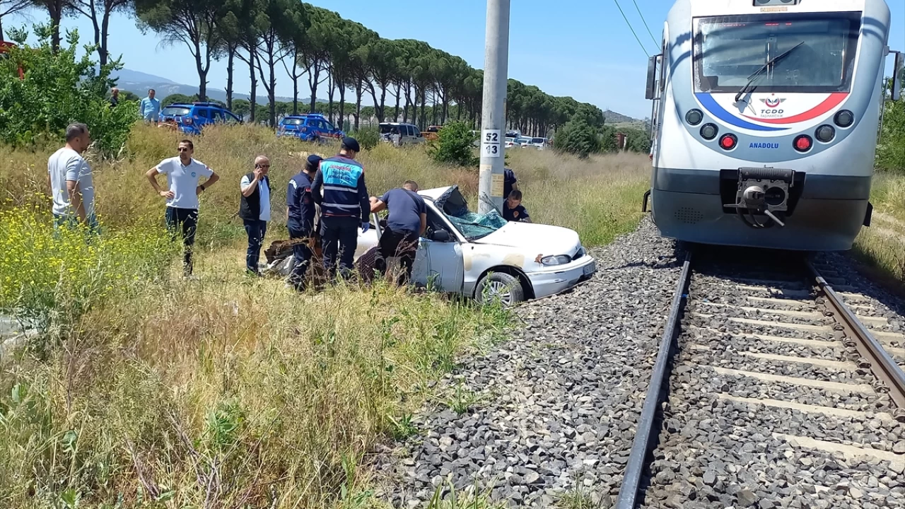 Manisa'da Hemzemin Geçitte Tren Otomobile Çarptı