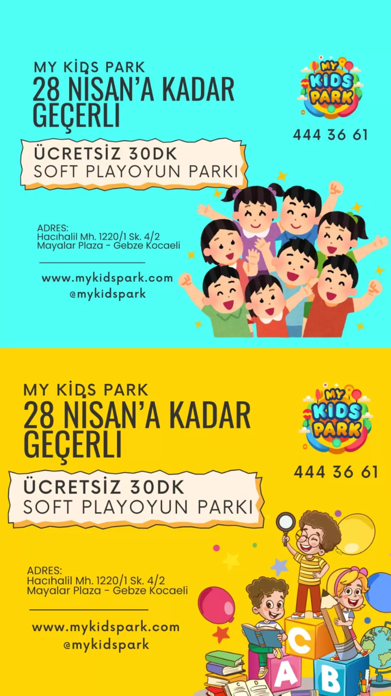 Açılışını büyük bir coşku ile kutlayan MYKIDSPARK, 23 Nisan’a özel tüm misafirlerine 30 dakika ücretsiz oyun süresihediye etmişti. Ancak yoğun talep üzerine bu fırsat, 28 Nisan’a kadar uzatıldı! Çocuklar, bu özel fırsatla birlikte güvenli bir ortamda eğlenirken, aileler de rahatça dinlenebilecek.