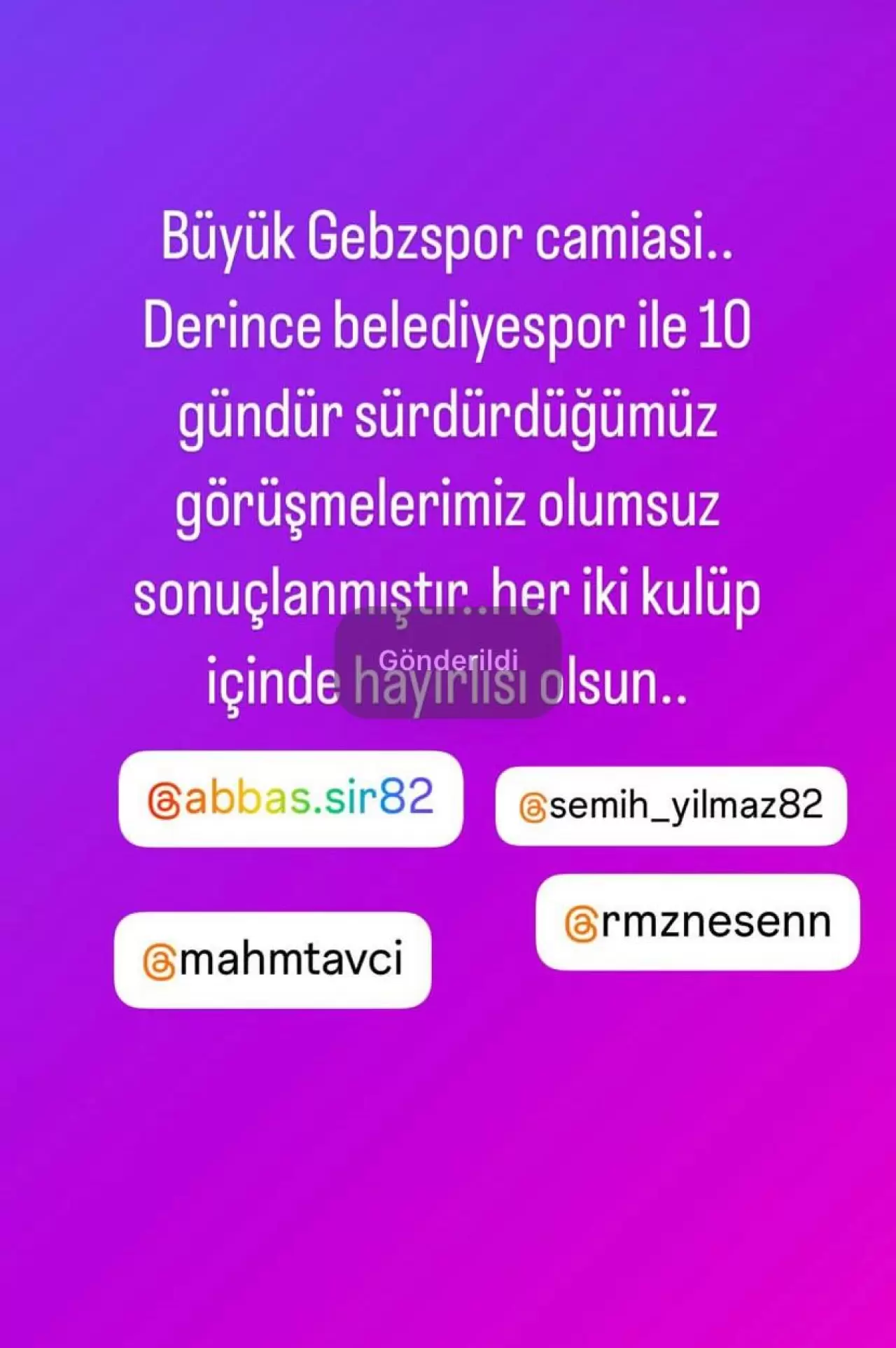 Dün akşam saatlerinde Gebzespor sayfasından yapılan açıklama